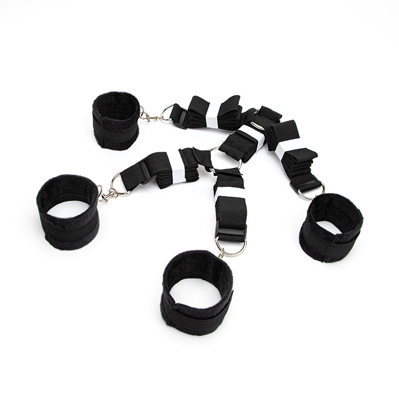 Complete restraint is yours in an instant as the set cuffs your sub’s arms and legs, giving you full access and control of their pleasure.